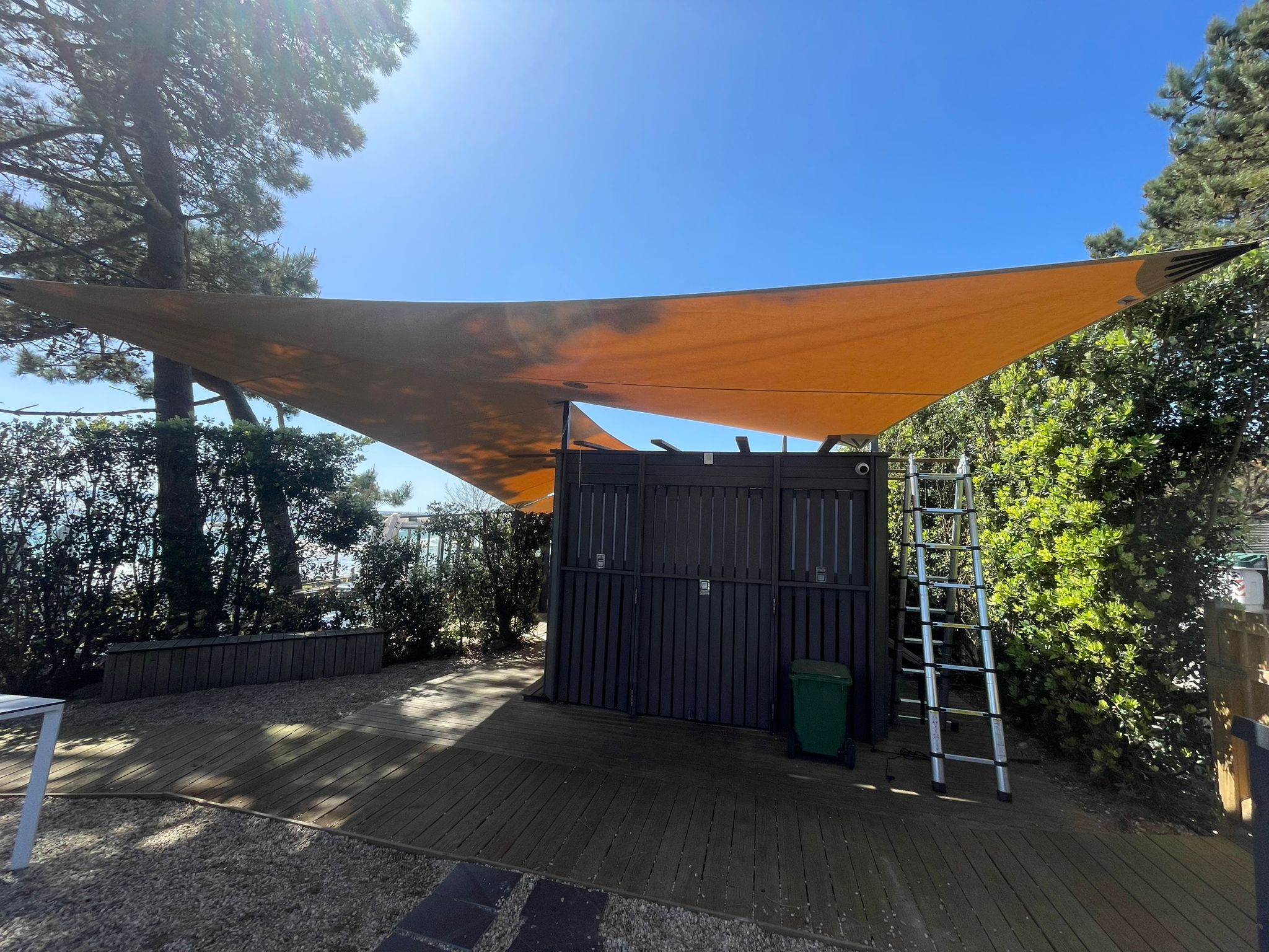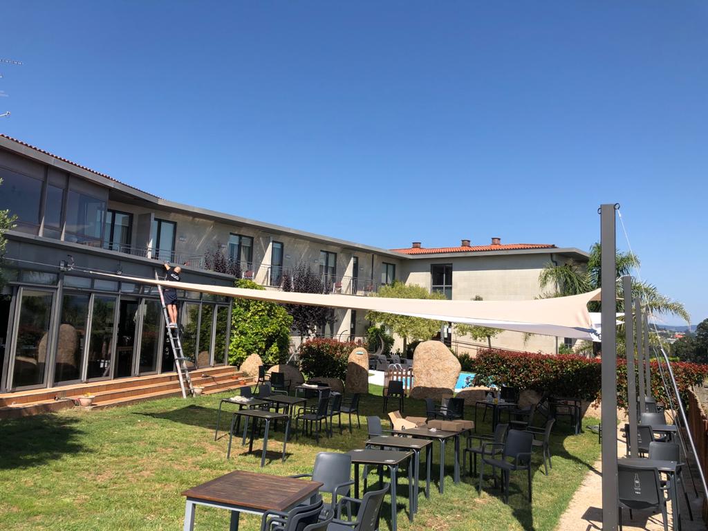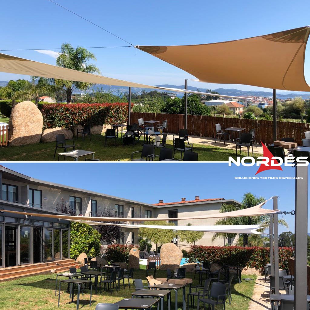 Se trata de toldos tensados, que les permite adaptarse perfectamente a los espacios a cubrir, sin necesidad de complejos sistemas de anclaje, muchas veces aprovechando paredes y otros elementos del entorno. Su infinidad de posibilidades permite a los diseñadores jugar con las sombras, los colores y las alturas. Dar sombra a las horas que queramos, permitir la traslucidez e incluso cierta transparencia.